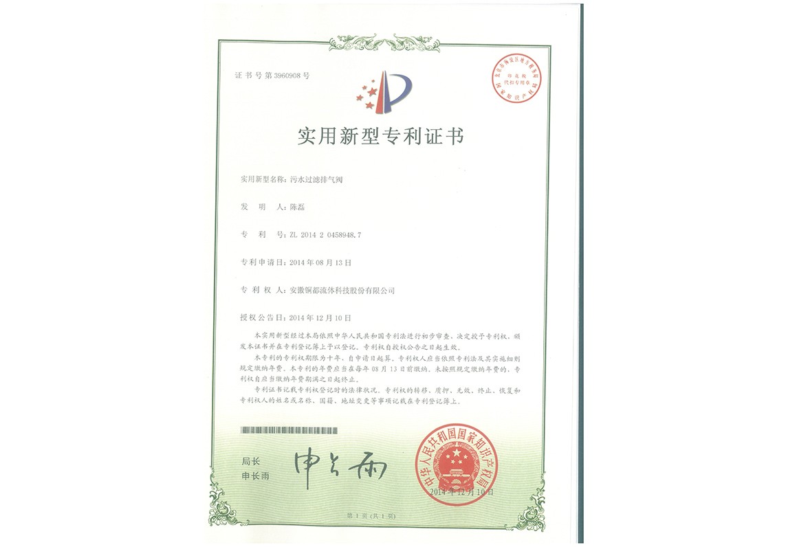 污水過(guò)濾排氣閥