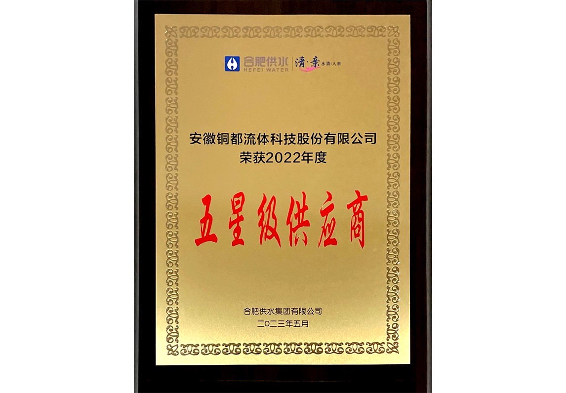 銅都流體2022年度合肥供水五星級(jí)供應(yīng)商