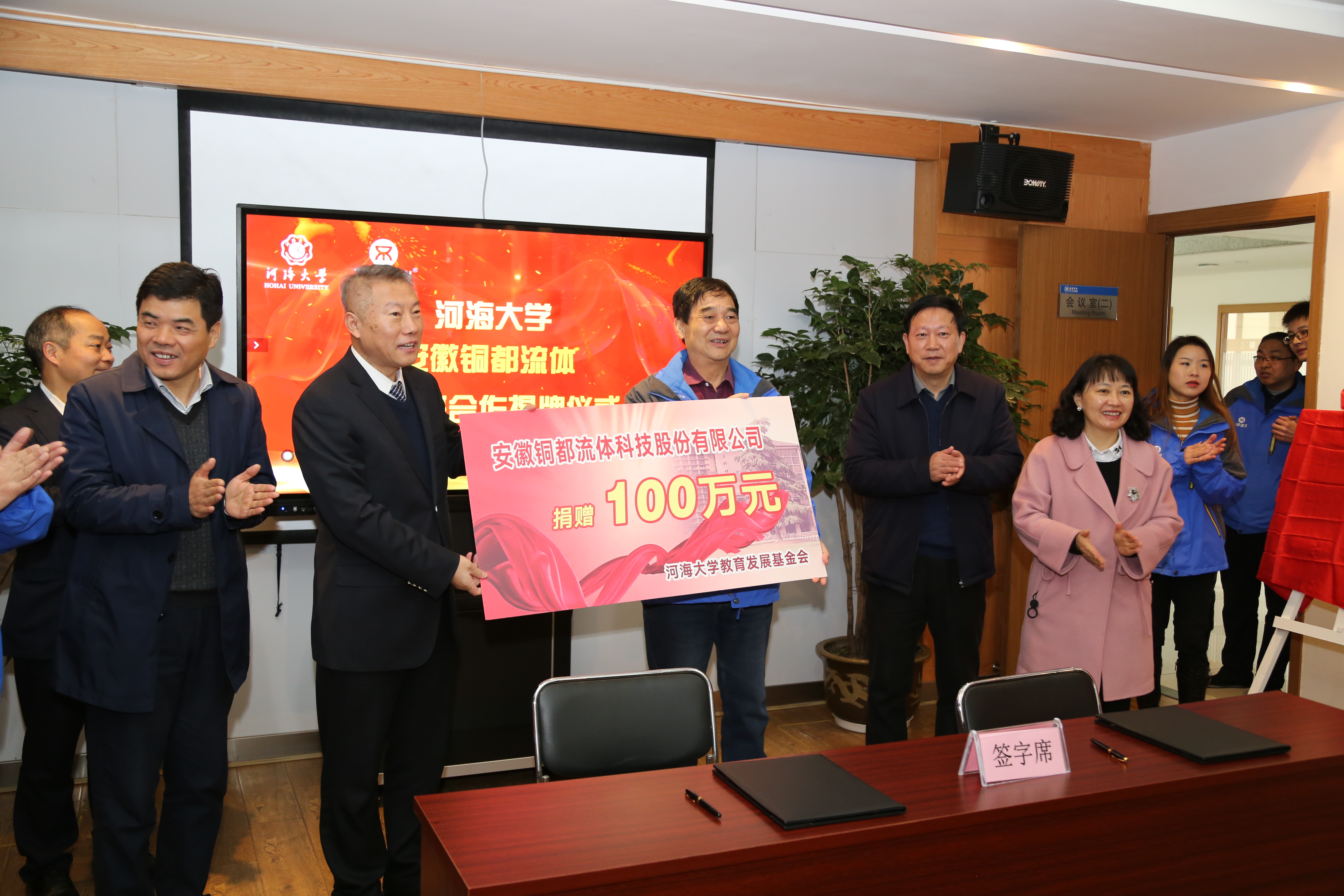 銅都流體向河海大學(xué)教育發(fā)展基金會(huì)捐贈(zèng)100萬元