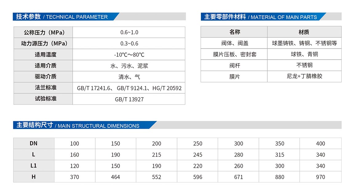 3、采用雙腔隔膜傳動機構,閥門開啟平穩(wěn)快捷。